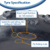 - 305/60-10 Hard wearing 6ply tyre with a tread depth of 17.5mm
