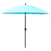 Aluminium shanghai parasol with crank and tilt2.6 metre diameter oriental style parasolLarge parasol for extra coverageTotal span of the umbrella when unwound 2.6 metres / 8.5 feetCrank and tilt style parasolDesigned for easy openingHand crank opens and closes the canopy easily and smoothly180 g/m polyester cover with 24 steel ribsSimply winds up or down but as well as this it can be tilted to make sure you are completely in the shade all day longPerfect for use in the garden, patio, poolside and on the beachSimply push the 2 x poles together and it clicks in for easy assembly (spring loaded lock)Total height when the two poles attached 2.5 metres38mm diameter steel pole for maximum strength and durability as well as for extra weight and greater wind resistanceDesigned for easy opening and water repellent fabricThe fabric is light shower proof but not recommended to be used in the rainSPECIFICATIONS• Aluminium shanghai parasol• Crank and tilt parasol• Total width of the parasol when opened – 2.6 metres• Total height from the floor – 2.5 metres• 24 steel ribs round the parasol for maximum strength (in windy conditions)• Colour – Blue• Water repellent fabric• Polyester material• Black powder coated poleTo use this item efficiently it is best used in a table (through the centre hole or in a parasol base – neither are provided with this listing)Do not leave out in high winds or heavy rain