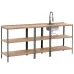 Create a complete outdoor cooking space with this stylish kitchen set, featuring three kitchen islands, one of them with a built-in sink. Each island is made from solid acacia wood and reinforced with a sturdy metal frame, offering spacious tops for prepping, serving, or washing. With a perfect mix of open storage and functionality, this set brings structure and elegance to your garden gatherings.