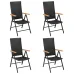 Table:Colour: BlackMaterial: Glass, aluminium with powder-coated finishDimensions: 150 x 90 x 74 cm (L x W x H)Chair:Colour: Black and brownMaterial: PE rattan, WPC, aluminium with powder-coated finishDimensions: 55 x 64 x 105 cm (W x D x H)Chair's backrest reclines in 7 positionsAssembly required: YesDelivery contains:1 x Table4 x Chair