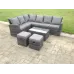 Modern 8-seater high back rattan garden furniture set with corner sofa, oblong coffee table, and footstools. Perfect for outdoor relaxation with durable, weather-resistant materials.