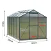 Description 8x6ft Outdoor Garden Polycarbonate Walk In Greenhouse with Sliding Door and Base Foundation, Green