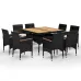 Description 9 Piece Garden Outdoor Dining Set Suitable for Backyard, Patio Poly Rattan and Solid Wood Black