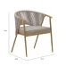 Our Almada 4 Seater Dining Set combines timeless style with everyday practicality, creating the perfect setting for outdoor dining and relaxed gatherings. With a durable aluminium frame finished in a stylish wood effect, this set boasts the beauty of natural wood with the added benefits of strength, and low maintenance. The elegantly crafted rope weave chairs bring a distinctive mid-century charm, while the weather-resistant, UV-protected light grey fabric ensures lasting comfort and durability. Whether you're enjoying a leisurely breakfast or hosting drinks with friends, this elegant and space-saving set, complete with stackable chairs, adds both sophistication and convenience to any garden or patio.