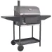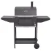 Colour: BlackMaterial: Powder-coated steel body + stainless steel handleOverall dimensions: 127 x 64 x 125 cm (W x D x H)Firebox size: 56 x 40.5 cm (L x W)Cooking area size: 53 x 40 cm (L x W)Cooking area height from the ground: 85.5 cmHood with chimney and integrated thermometerHeight-adjustable charcoal tray2 porcelain enamelled cooking grillsIncluding an ash pan with a stainless steel handleTwo folding side tablesWith a bottom shelf and two wheels