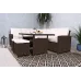 The Berlin Eight Seater Corner Dining Set is the perfect practical family dining set. It retains a classic style with a steel framework and hand woven flat synthetic rattan weave. It offers style, comfort, strength and durability. This set consists of a rectangular table, a three seater corner sofa, a three seater one arm sofa and 2x footstools with polyester cushions. This corner dining suite comes in a choice of black or brown rattan weave. You can even match this set with the rest of the Berlin range.