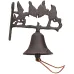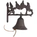 Cast iron wall-mounted bird bell. 4 Bird decorations. Bell and frame painted antique brown. 2 screw holes, 1 in each end. Bell dimensions - 11cm Diameter, 8cm deep. Antique style finish. Great on a wall, fence, gate or door. Length: 20cm approx. Width: 11cm approx. Depth: 19cm approx. This item is NEW, but comes in "Rustic" condition and is being sold as pictured.