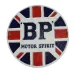 BP MotorSpirit sign / plaque. Cast Iron. Sign reads "BP MotorSpirit". White background with blue raised writing and raised GB flag oultline. 2 screw holes. Antique style finish. Great on a fence, gate, door, garage or workshop. Length: 24cm approx. Width: 24cm approx. Depth: 5mm approx. This item is NEW, but comes in "Rustic" condition and is being sold as pictured.