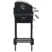 Colour: BlackMaterial: Powder-coated steelOverall dimensions: 97 x 57 x 99 cm (W x D x H)Cooking area size: 43 x 32 cm (L x W)Height of cooking area from the ground: 82 cmHeight adjustable charcoal trayWith an integrated thermometerWarming rack includedWith bottle openerWith bottom shelfFoldable side tablesWith 2 sturdy castors for mobility