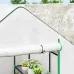 This Outsunny small plastic greenhouse with shelves is suitable for gardeners of all levels. With the UV-resistant plastic cover, roll-up door and three mesh windows, it is a safe shelter inside, allowing you to create a desirable temperature and humidity for total control. Four shelves on each side allow room for holding and organising pots and trays.Features:Walk-in greenhouse with four shelves on both sides. 143 x 140cm is a spacious sizeUV-resistant plastic cover for safe shelter to allow plants to growHemmed edging reinforces the cover and helps prevents tearingRoll-up zipped door and three mesh windows for easy access and ventilationOverlong cover, guy ropes and ground stakes make the greenhouse more stable and secureEasy to assemble, two people recommended Specification:Colour: WhiteMaterials: Steel, PolyethyleneOverall Dimensions: 140W x 143D x 190H cmDoor Dimensions: 86W x 157H cmWindow Dimensions: 30W x 30H cmWire Shelf Dimensions: 60W x 25D cmShelf Spacing: 45 cmEdging Width: 10 cmShelf Weight Capacity: 10 kgItem Label: 845-932V02WTPackage Includes:1 x Greenhouse4 x Guy Ropes4 x Ground Stake16 x Clips1 x Manual