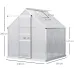 This Outsunny polycarbonate greenhouse is a piece for every gardener. The aluminium frame means a strong core, fitted with polycarbonate panels for a protective shell - protects plants from harsh sunlight, wind and rain. The transparent finish allows natural sunlight to promote healthy growth. Fitted with a sliding door for easy access, plus two five-level windows to bring in plenty of fresh air whenever needed.Features:190 x 190cm walk-In design: plenty of room. Open inside to set up how you wantAluminium frame means a strong core, with polycarbonate to shelter inner plantsSliding door for easy access in and outTwo five-level adjustable windows to bring in fresh air when neededTilted roof with rain gutters prevents water build-upBase included for balance, with ground bolts to anchor to the groundAssembly required Specification:Colour: Silver Tone, ClearMaterial: Aluminium, Polycarbonate PanelOverall Dimensions: 190W x 190D x 200H cmEave Height: 127 cmDoor Size: 62W x 164H cmWindow Size: 61W x 57H cmFoundation Size: 190 x 190 x 5 cmPC Panel Thickness: 4 mmWindproof Level: 4Item Label: 845-540Package Includes:1 x Greenhouse1 x Foundation1 x Manual
