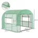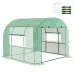 Small spots count for growing too, thanks to this Outsunny 300 x 300cm greenhouse. The open inside allows you to set up inside however you want - how about placing shelves for organisation? The zipped doors ensures easy access; it rolls up and stays in place. Mesh windows allow fresh air inside whenever you want. A steel frame for a strong core, fitted with a protective plastic cover to create a safe shield from outside weather. Comes with ground stakes and guy ropes to secure to ground.Features:Roll-up doors and mesh windows: access inside and allow fresh air inSteel frame, with arched top to reduce saggingsThree-layer plastic cover to protect. Middle reinforcement grid for extra durabilityExtended cover edges to bury into soil. Ground stakes and guy ropes for extra stabilityTwo people recommended to assemble Specification:Colour: GreenMaterial: Steel, PolyethyleneOverall Dimensions: 300L x 300W x 200HcmDoor Dimensions: 180W x 170HcmSide Window Dimensions: 125W x 50HcmEdging Width: 10cmWindproof: Level 4 (wind speed below 17.5mph)Item Label: 845-958V02GNPackage Includes:1 x Tunnel greenhouse4 x Ground stake4 x Guy rope