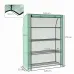 This Outsunny mini and portable greenhouse paves the way to growing plants, flowers and more practically anywhere. Great for those with smaller homes - perfect for putting on windowsills where no garden is available. A steel frame means a strong core, with four movable shelves to give you plenty of levels to organise greenery. The three-layer plastic cover creates safe inner shelter, with the inner mesh helping to prevent tears. Gardening, done anywhere.Features:Four movable wire shelves. Easy plant organisationUV-resistant cover for safe shelter. Overlong corner edges to bury into soilHemmed edging to reinforce and prevent tearingRoll-up zipped door for easy access and ventilationSteel frame for a strong standing structureEasy to assemble with plastic joints and shelf clips includedSpecification:Colour: GreenMaterial: Steel, PolyethyleneOverall Dimensions: 120W x 50D x 170HcmDoor Dimensions: 102W x 163HcmWire Shelf Dimensions: 55W x 45DcmEdging Width: 10cmShelf Weight Capacity: 10kgItem Label: 845-938V00GNPackage Includes:1 x Mini Greenhouse16 x Clips1 x Manual