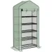 This Outsunny mini and portable greenhouse paves the way to growing plants, flowers and more practically anywhere. Great for those with smaller homes - perfect for putting on windowsills where no garden is available. A steel frame means a strong core, with five movable shelves to give you plenty of levels to organise greenery. The three-layer plastic cover creates safe inner shelter, with the inner mesh helping to prevent tears. Gardening, done anywhere.Features:Lengthened design to store more plantsFive movable wire shelves. Easy plant organisationUV-resistant cover for safe shelter. Overlong corner edges to bury into soilRoll-up zipped door for easy access and ventilationSteel frame for a strong standing structureEasy to assemble with plastic joints and shelf clips included Specification:Colour: GreenMaterial: Steel, PolyethyleneOverall Dimensions: 90W x 49D x 193HcmDoor Dimensions: 70W x 160HcmWire Shelf Dimensions: 82W x 45DcmEdging Width: 10cmEach Shelf Weight Capacity: 10kgItem Label: 845-937V00GNPackage Includes:1 x Greenhouse10 x Plastic Buckle1 x Manual