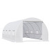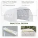 The spacious walk-in polytunnel greenhouse from Outsunny helps you create your very own indoor garden. Made from solid metal frame with PE cloth to protect your plants, fruits and vegetables against unsuitable weather. The green house for garden is created to provide desired temperature, humidity and sunlight to your plants. Roll up windows and zippered doors allow ease of access and optimum protection from birds and pests. Extend the planting time, enjoy the fun of planting for a long time.Features:Walk-in poly tunnel greenhouse protects plants from cold and birdsSuitable for year-round gardening of vegetables and flowersUV-blocking PE cover with a reinforcing grid to prevent tearingThe solid galvanised metal frame ensures strengthRoll-up zippered door provides easy access and forms a tight protective seal8 mesh windows control the amount of light and ensure well ventilation15 cm extended edges are supposed to be deeply buried in the soil for extra stabilityAssembly required, 4 guy ropes and 4 ground nails includedSpecification:Colour: WhiteMaterial: Galvanised metal, PEOverall Dimension: 5.95L x 3W x 2HmDoor Size: 1.7W x 1.7HmWindow Size: 45L x 37WcmItem Label: 845-120NOTE: 1. Please do not use acidic farm chemical to avoid chemical reactions with the alkaline PE cover, which result in breakage2. Not suitable for bad weather conditionsPackage Includes:1 x Greenhouse4 x Pull Rope4 x Ground Nail