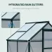 Start and continue the season right with this Outsunny 6ft x 4ft greenhouse. An open, walk-in design means it's easy to enter and leave, whilst giving you the full free space to set it up how you want. A powder-coated aluminium frame means a strong structure, with four ground stakes included to pin to the ground. Features a sliding door for easy access in and out, with a lift-up roof which holds in place - it's easy to let in fresh air, whenever you want.Features:Can hold up to 40kgm² of snow in winterAluminium frame for a strong structure. Rust resistantTransparent polycarbonate panels for a safe indoor shelter, which allows sunlight to pass through for growthSingle sliding door for easy access. Top roof panel for ventilation, wheneverFour ground stakes included to pin into the groundAssembly requiredSpecification:Colour: ark Green, ClearMaterial: Aluminium alloy, PC boardOverall Dimension: 190L x 132W x 201H cmWindow Size: 60.2L x 60W cmDoor Size: 60L x 161.5H cmPC Board Thickness: 4 mmWeight Capacity: 40 kg/? SnowWindproof Level: 6Item Label: 845-057Package Includes:1 x GreenhouseGround Nails