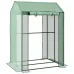 Home growing - twice over. This Outsunny 80 x 100cm greenhouse comes in a two-room design, so you can separate plants to how you want. With a steel frame, the core is sturdy, whilst the plastic cover creates a protective shield for inside - plants grow with cover against wind and rain. 10cm cover edges to bury into soil for extra stability. Easy to access and let air inside - simply roll up the two doors and hold them in place.Features:Two-room design: grow two different types of plants in their own spacePlastic, UV-resistant cover: a safe shield for plants insideTwo roll-up zipped doors for easy access and ventilationSteel frame: a tough core10cm cover edges to bury into soilConvenient to assemble with plastic joints, recommend 1-2 people Specification:Colour: GreenMaterial: Steel, PolyethyleneOverall Dimensions: 150H x 100L x 80WcmDoor Dimensions: 72W x 125HcmVentilation Holes: ?10mmEdging Width: 10cmWind Protection Level: 4Item Label: 845-957V00GNPackage Includes:1 x Mini Greenhouse1 x Manual
