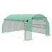 This Outsunny garden polytunnel greenhouse is perfect for the home gardening enthusiast. Grow plenty of plants, vegetables and more in its open and spacious design. The galvanised steel frame means a strong standing structure, with the plastic mesh offering a safe shield for the inside. Both sides completely roll up to allow plenty of fresh air in. Complete with eight roll-up windows and a large roll-up door. 4 x guy ropes and 4 x ground stakes included.Features:Walk-in design is large and spacious, plenty of growing roomPlastic mesh cover is a safe shield for insideStrong standing galvanised steel frameTwo sides can be rolled up completely for allowing plenty of fresh air insideEight roll-up windows and a large roll-up door15cm extended edges to bury into soilAssembly required, 4 x guy ropes and 4 x ground nails included Specification:Colour: GreenMaterial: Galvanised Steel, PEOverall Dimension: 3.97L x 3W x 2HmFront Door Size: 1.72W x 1.7HmSide Cover Roll-up Height: 1.5mWindow Size: 40L x 45WcmWindproof Level: 4Item Label: 845-612V01GNNOTE: 1. Please do not use acidic farm chemicals to avoid chemical reactions with the alkaline PE cover, which result in breakage2. Not suitable for bad weather conditionsPackage Includes:1 x Greenhouse4 x Pull Rope4 x Ground Stake1 x Manual