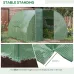 This greenhouse tent from Outsunny comes with an integrated tunnel and is composed of durable PE cloth over a high-quality steel pipe frame. Thanks to solar energy, poly tunnels with door can maintain consistent temperatures that is ideal to plant growth. The durable PE cover protects the plants in this plastic greenhouse from light rain and pests. The two windows on either side are suitable for ventilation. In this plastic greenhouse walk in, all your vegetables, flowers, fruits will flourish.Features:Portable and lightweight, ideal to extend your plants growing season no matter where you liveBuilt form steel tube frame and PE cloth in "tunnel" styleGalvanised steel frame provides a durable, stronger and corrosion resistant structureFull closed cover maintains higher humidity levels for growing tropical plants, vegetables and herbsWeather-resistant cover ensure all your plants are protected from light rain and pestsHinged door provides easier access for gardeners to enter this greenhouseTwo rows of windows on either side for better ventilation, which can also be fastened up on rainy days for water gatheringSpecification:Colour: GreenMaterial: Galvanised Steel, PE fabricOverall Dimension: 3.81L x 2.92W x 1.97H (m)Window Size: 140L x 33H (cm)Door Size: 84W x 184H (cm)Item Label: 845-142NOTE: Not suitable for bad weather conditions