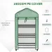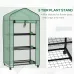 Grow plenty of plants, flowers and vegetables wherever you want, with this Outsunny mini greenhouse. With a steel frame for a strong core, it's formed into a three-tier design so you organise; the mesh shelves means there's no liquid build up so the frame doesn't become damaged. Fitted with a tough three-layer plastic cover to protect growing plants inside, complete with a roll up door to access inside and wheels to move around. Use in the corner of your outdoor spaces - even windowsills!Features:Three wire shelves: holds plenty of plants, without water build-upPE cover protects inside plants, with middle reinforcement grid to reduce tearingSteel frame means a strong and supportive coreRoll-up zipped door for easy access and ventilationWheels to move around easily, with brakes for safetyMaximum load 5kg per shelf, 1-2 people recommended for assemblySpecification:Colour: GreenMaterials: 140 gsm Polyethylene, SteelOverall dimensions: 69L x 49W x 130H cmDoor dimensions: 51L x 100H cmShelf dimensions: 61.5L x 45W cmHeight of each shelf: 33 cmMax. recommended load: 5 kgItem Label: 84H-068V00GNPackage Includes:1 x Mini Greenhouse1 x Manual