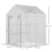 Get this portable greenhouse from Outsunny to extend your growing season by protecting plants from cold and birds. It comes with a steel frame for a steady core. The PE cover creates a protective shell, holding in the heat and shielding from wind and rain. The roll-up door, with zip fastening, allows you to enter and leave to access your plants at any time. Simply put up, go and grow. Do not leave standing in heavy weather conditions.Features:UV-resistant PE plastic cover for protection against water, wind and damaging sun raysLarge roll-up door for easy in and outMetal wire shelves to store and display plants above the groundThe metal frame is solid and stableReinforced piping edges of the cover protect it from potential tears and enhance the strengthAssembly required, requires two people to set upSpecification:Color: GreenMaterial: Steel, PEOverall Dimension: 143L x 143W x 195H cmDoor Size: 85W x 147H cmShelf Size: 58L x 28W x 50H cm (per shelf)Weight Capacity: 15kg (per shelf)PE Cover: 140 g/?Item Label: 845-621V01NOTE: Please do not use acidic farm chemical to avoid chemical reactions with the alkaline PE cover, which result in breakage.Package Includes:1 x Greenhouse1x Manual