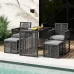 Enjoy plush comfort with removable sponge-padded cushions, contoured backrests, and comfortable armrests. The reliable construction ensures great sturdiness. The sturdy metal frames offer optimal stability for each chair and ottoman supporting up to 180 kg. The tempered glass tabletop is enduring, sturdy, and easy to maintain. This space-saving set features foldable backrests and the ottomans can be stored under the chairs. The elegant hand-woven PE rattan material is anti-fading and sun-protective, enhancing any outdoor space. Perfect for gardens, decks, and more, this outdoor dining set provides a luxurious and cozy outdoor experience.