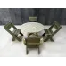 Description DeckFusion wooden rounded picnic table and four chairs set (Natural, light green)