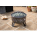 Main attributes Deepbowl Firepit with Striking Flame Design, Chrome Grill for BBQ Cooking, Powder-Coated Steel, Stable 3-Leg Base & Safety Tool