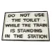 Do not use the toilet sign / plaque. Sign Reads - "Do not sign use the toilet while the train is standing in the station" Cast Iron. White background with black raised writing and black outline. 2 screw holes, 1 in the centre of each end. Antique style finish. Great on a fence, gate or door. Length: 29cm approx. Width: 19cm approx. Depth: 10mm approx. This item is NEW, but comes in "Rustic" condition and is being sold as pictured.