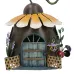 Decorative fairy garden house, made from metal this particular house features a sunflower roof and is decorated with mushrooms and flowers. The highly detailed design features windows with shutters and a hinged opening front door. Designed for decoration around the garden would make a lovely gift. Dimensions: 18cm (W) x 16cm (D) x 18cm (H).