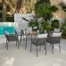 Upgrade your garden space with our Fiji garden dining set. Finished with comfy foam filled padded back and seat cushions. This garden range has been designed with a gorgeous polyester rope style backing. Its grey aluminum metal frame provides a beautiful blend with the grey cushions and polyester back. Choose from a set of four chairs or six chairs to suit your home and family. We recommend that you use the provided garden furniture cover when not in use, and bring your cushions indoors for longevity. As the chairs have been made from polyester we recommend that in damp conditions the entire garden set is brought indoors. What’s included in your purchase? A dining table, chairs and a cover. Product Dimensions: Chair Size: W: 63.5cm D: 57cm H: 76.5cm Table Size: W: 160cm D: 90cm H: 76cmSelf-assembly is required with easy-to-follow instructions included.