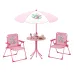 - Color: PinkMaterial: PP, HDPE, Polyester Fabric, Oxford Fabric, MetalTable Dimensions: 50x 50 x 51 cm(L x W x H)Chair Dimensions:39 x 37 x 50 cm(L x W x H)Backrest Height: 29 cmSeat Width: 29 cmSeat Depth: 23 cmSeat Height: 26 cmFolded Size of Each Chair: 50 x 39 x 7 cm(L x W x H)Canopy Diameter of Umbrella: 100 cmPole Length of Umbrella: 121-128 cmSuitable Age: 3-6 Years OldWeight Capacity of Table: 30 kgWeight Capacity of Each Chair: 75 kgDiameter of Built-in Umbrella Hole: 2.5 cmNet Weight: 4 kgPackage Includes:1 x Table2 x Chairs1 x Umbrella1 x User Guide