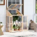 A sanctuary for your plants!The mini greenhouse features 2 shelves that can effortlessly accommodate an array of potted plants and essential gardening tools. Also, the 2 shelves can be moved to adapt to higher plants or growing deep rooted plants. Equipped with transparent PC panels, the raised flower planter shelf maximizes light transmission, creating an optimal environment for your plants to thrive. Boasting fir wood frame, the cold frame is not only sturdy but also resistant to deformation. Plus, the natural surface allows you to customize its appearance. The openable roof with support rods serves as a unique feature that aids in regulating temperature, creating a balanced climate for your plants. Additionally, the ventilated design promotes airflow, fostering a fresh environment that is conducive to plant growth. With double doors, accessing your plants and tools has never been more convenient.