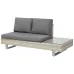 Modular garden sofa set that meets all the requirements for a comfortable, outdoor rest. The generous seating surface made in light-coloured polyrattan which harmonizes beautifully with the grey of the softly padded cushions. The seat of the chaise part is fully adjustable so you can easily turn it into a comfortable lounger. With the rectangular coffee table and an additional table top on the sofa end, you will never lack space to serve drinks and snacks.