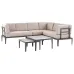 Create a comfortable lounge area in your garden with this fabulous corner set. Its frame is made from aluminium, which makes it surprisingly easy to clean. Comfortable seating is guaranteed thanks to thickly padded seat and back cushions in a trendy colour. The modular function allows for a quick design change, joining the three pieces together with an included connector, or creating separate seating groups in a blink of an eye. The set also comes with two coffee tables, which makes it exceptionally multifunctional, allowing you to place multiple drinks, snacks or dishes on them.