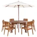 Description Garden Dining Set 6 Seater AGELLO with Parasol (12 Options) Acacia Wood Brown