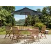 Prepare your garden for warm days and transform it into a fancy dining area with this timeless set, consisting of 6 comfy chairs and an extendable table. All pieces are made out of robust acacia wood in dark colour - this material is characterized by its durability, natural UV resistance and low maintenance needed. The table can be extended, so it fits even up to 8 people, and in the middle it features a parasol hole, so you can easily fit there the included umbrella, providing a cool shade during dinners. After eating, you can relax while still sitting on the chairs, as they feature adjustable backrests.