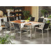 An exclusive garden set that will add a stylish touch to your garden or patio. Featuring a beautiful combination of stainless steel and natural eucalyptus wood for a modern look. The wooden table top is weather-resistant and its light wood colour perfectly matches the silver outline. The steel frame is durable, ensuring the furniture will remain beautiful over time. Stacking chairs made of sturdy frames and UV resistant rattan are a perfect complement to the table.