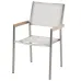 An exclusive garden set that will add a stylish touch to your garden or patio. Featuring a beautiful combination of stainless steel and black glass for a modern look. The table top is weather-resistant and its dark colour perfectly matches the silver outline. The steel frame is durable, ensuring the furniture will remain beautiful over time. Stacking chairs made of sturdy frames and UV resistant white material are a perfect complement to the table.