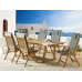 Seat comfortably and enjoy your meal in the fresh air with this classic, outdoor dining set. Made from high-quality acacia wood, it makes a perfect match with virtually any setting thanks to the natural, light finish. The folding chairs come with matching cushions for increased comfort. The extending top makes the set ideal for both, regular family dinners and more festive occasions or parties in the garden.