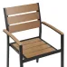 The elegant and stylish outdoor dining group is a great addition to the garden or terrace. It consists of a dining table and six stackable chairs, so you can save space when they are not in use. Their solid frames are made of aluminum, and the tabletop and seat parts are made of plastic imitation wood, which makes the furniture easy to maintain and weatherproof. The plastic wooden piece placed on the armrests of the chairs protects from the cold aluminum and offers comfort. The minimalist design makes the set universal and makes it fit into any modern interior.