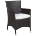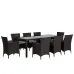 Modern design, wicker dining set for eight, ideal addition to any outdoor area in contemporary or traditional decor. Made of brown durable synthetic rattan, the set features a powder-coated aluminium frame which guarantees maximum stability. The chairs include thick cushions equipped with a removable cover for easy cleaning while the table comes with a robust, tempered-glass top.