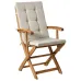 A functional 9-piece dining set made from acacia in a beautiful warm wood tone. Designed with butterfly leaves, the tabletop is easily extendable and features a pre-cut hole for an umbrella pole. The collapsible chair allows you to save on space, while the high back guarantees comfortable sitting. Each chair includes a plush seat and back cushion, generously filled with foam for superior comfort. The cushion covers are designed to resist fading and light rain, maintaining their fresh look all season long. Convenient tie-backs keep the cushions securely in place, even on windy days. With its classic yet simple design, the set blends well with any modern garden or patio decorating style.
