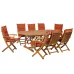 A functional 9 piece dining set made from acacia in a beautiful warm tone. Designed with butterfly leaves, the tabletop is easily extendable and features a pre-cut hole for an umbrella pole. The collapsible chair allows you to save on space, while the high back and matching cushions guarantee comfortable sitting. With its classic yet simple design, the set blends well with any modern garden or patio decorating style.