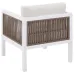 With this modern corner sofa accompanied by a coffee table with an easy to wipe clean glass top, you can give your outdoor space a makeover. The strong aluminium construction ensures the furniture will look good for many years. Featuring an accent rope weaving on the backrest it brings a Mediterranean flair. The white finish suits well many outdoor styles and allows you to add some personal touches, such as decorative pillows or throws.