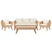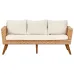 Enjoy the ultimate conversation spot for long afternoons and relaxing evenings in your garden or patio with this modern set. Accommodating up to five guests, the three seater sofa and a pair of chairs feature light rattan, retro inspired wooden legs and soft, off-white cushions. The high-quality weather-resistant materials of this set ensure perfect maintenance of its original condition, while the trendy design infuses a modern accent that instantly upgrades the look of any outdoor living space.