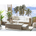 Give your outdoor area an upgrade with this classic sofa set. Thanks to its simple yet timeless design the set works beautifully with modern, traditional and contemporary settings. Made from durable and resistant faux rattan, it features richly padded seat and back cushions in a complementary colour. The set comes complete with a coffee table with a tempered glass top which offers plenty of space for your morning coffee and snacks. The ottomans can be put under the table which can be placed on the sofa for easy storage.