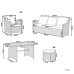 Comes with - 2 x Ottoman, 1 x Table, 1 x Sofa, 2 x Armchair, Not Included: Decorations