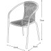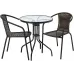 Garden table features:Glass table top.Metal garden table.Table size: H71, .Table diameter: 60cm.Removable legs for storage.Parasol hole.Can be covered with plastic cap which is included if not needed.Garden chair features:Set seats 2 people.Seat height 42.5cm.Frame made from steel.Chair seat and back made from rattan effect.Armchairs.Size H73, W53, D58cm.110kg maximum user weight per chair.General Features.Suitable for garden use.Can be left outside all year; protect with a cover when not in use.Total weight 10.65kg.Self-assembly - 2 people required.Manufacturer's 1 year guarantee.