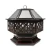 This 24.5inch stunning outdoor firepit will be the stunning focal point you desire this summer time, and will add the sophistication and glamour to all garden parties and BBQ’s. The firepit utilises a highly decorative bronze effect finish, adding to the elegance and glamour of the unit. The bowl inside the firepit measures 61cm, and can house either charcoal or firewood, giving you ultimate control on how you’d like to present your fire. The hexagonal shape of the outdoor firepit allows for an even distribution of heat, and the diamond mesh panelling ensures the logs, charcoal, and flames stay inside the unit at all times. The heater is manufactured from steel, and has a painted bronze finish that can withstand temperatures of up to 300°C. The whole unit measures 62cm x 62cm x 64cm, and is anchored in place by the sturdy base that follows the shape of the unit. Once the party is over you can keep the firepit looking pristine by covering it in the PVC waterproof coating that comes included with the firepit.